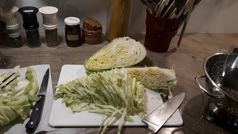 Dieses Rezept gilt nicht nur für Spitzkohl, sondern auch für Wirsing! Warum lieber Spitzkohl als Wirsing? Weil der Spitzkohl zarter als der Wirsing ist und feiner schmeckt! Wir benötigen an Handwerkszeug folgende Sachen: Ein sehr scharfes Meser, einen Kochtopf, eine Schneideunterlage, und allgemeines Küchenwerkzeug.