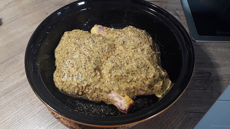 Hühnchenschenkel mit Senfkruste(Ansicht auf Mob.-Telefon oder Tablet am besten quer!) |