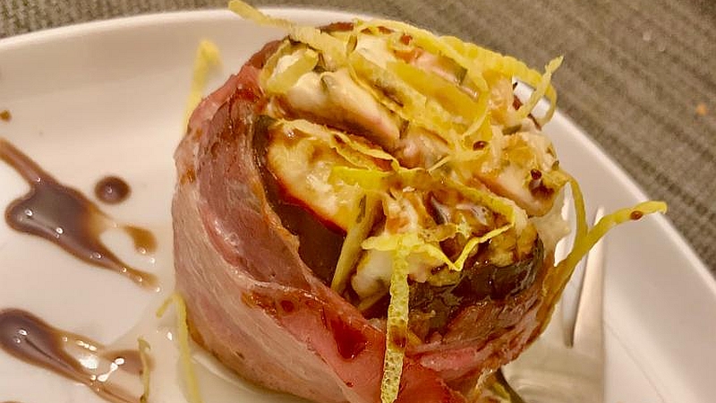 Feige im Speckmantel gefüllt mit Ziegen-Frischkäse |