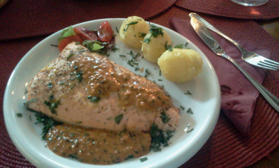 Das mit dem Lachs wäre zum Beispiel bei einem der Discounter: “Albrecht Feinkost“ oder so, als Quelle zu lösen. Dabei könnten auch die anderen Zutaten besorgt werden.