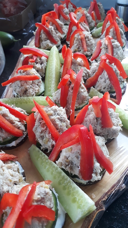 Wer vorher nicht schon zuviel von der Makrelenpaste gekostet hat ?, kann ca. 15 „Häppchen“ zubereiten.
