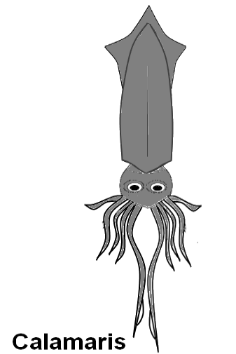 Der Calamaris ist torpedoförmig und besitzt zehn Arme, von denen zwei länger sind: Die Fangarme. Er ist schon nach kurzer Koch-/ Bratzeit zum verzehr geeignet. Er hat im Körper der "Tüte" eine durchsichtige Weidenblattförmige Gräte, die sich leicht herausziehen läßt.