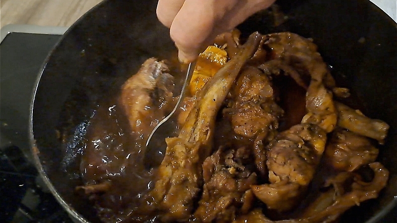 Es ist gar nicht so kompliziert wie es im ersten Moment aussieht. Das Kaninchen gibt es schon küchenfertig im Supermarkt. oder beim Metzger des Vertrauens zu kaufen. Das Zerlegen ist recht unproblematisch: zuerst die Vorder- und Hinterräder, ich meine natütlich die Vorder- und Hinterbeine abtrennen. Dann den Rumpf in etwa 3-Finger breite "Scheiben" schneidden. Und schon kann es losgehen.