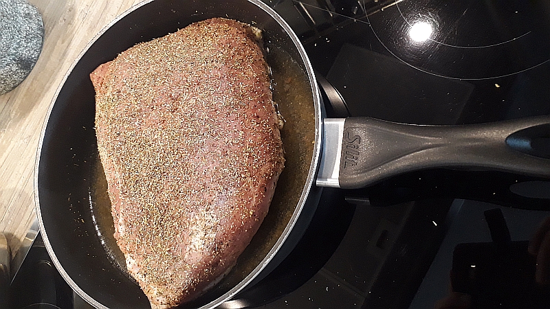 Keine Angst vor dem Braten. Es ist wirklich ganz easy! Wir benötigen an Handwerkszeug folgende Sachen: Ein sehr scharfes Meser, eine hohe Bratpfanne oder Kochtopf, eine Auflaufform aus Metall oder Keramik keine beschichtete Form, wegen der hohen Themperatur unter dem Grill und allgemeines Küchenwerkzeug. Gut ist auch ein Bratenthermometer, um die Kernthemperatur zu kontollieren.