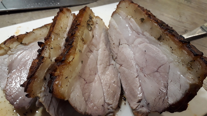 Hier das kleine Filmchen dazu in HD Der beste Krustenbraten gelingt aber aus dem Schweine-Nacken, der wird viel saftiger! Für Mobile Geräte die kleinere Datei zum schnelleren Streamen. Klick hier!Und wenn noch etwas vom Braten übrig bleibt, dann am nächsten Morgen fein aufgeschnitten zum Frühstück auf's Brot! |