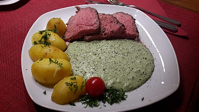 * Roastbeef mit Frankfurter Grüner Sauce u. Kartofeln