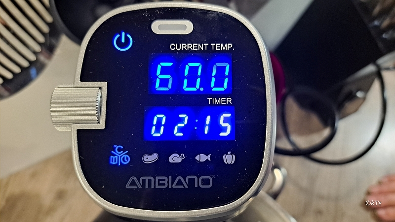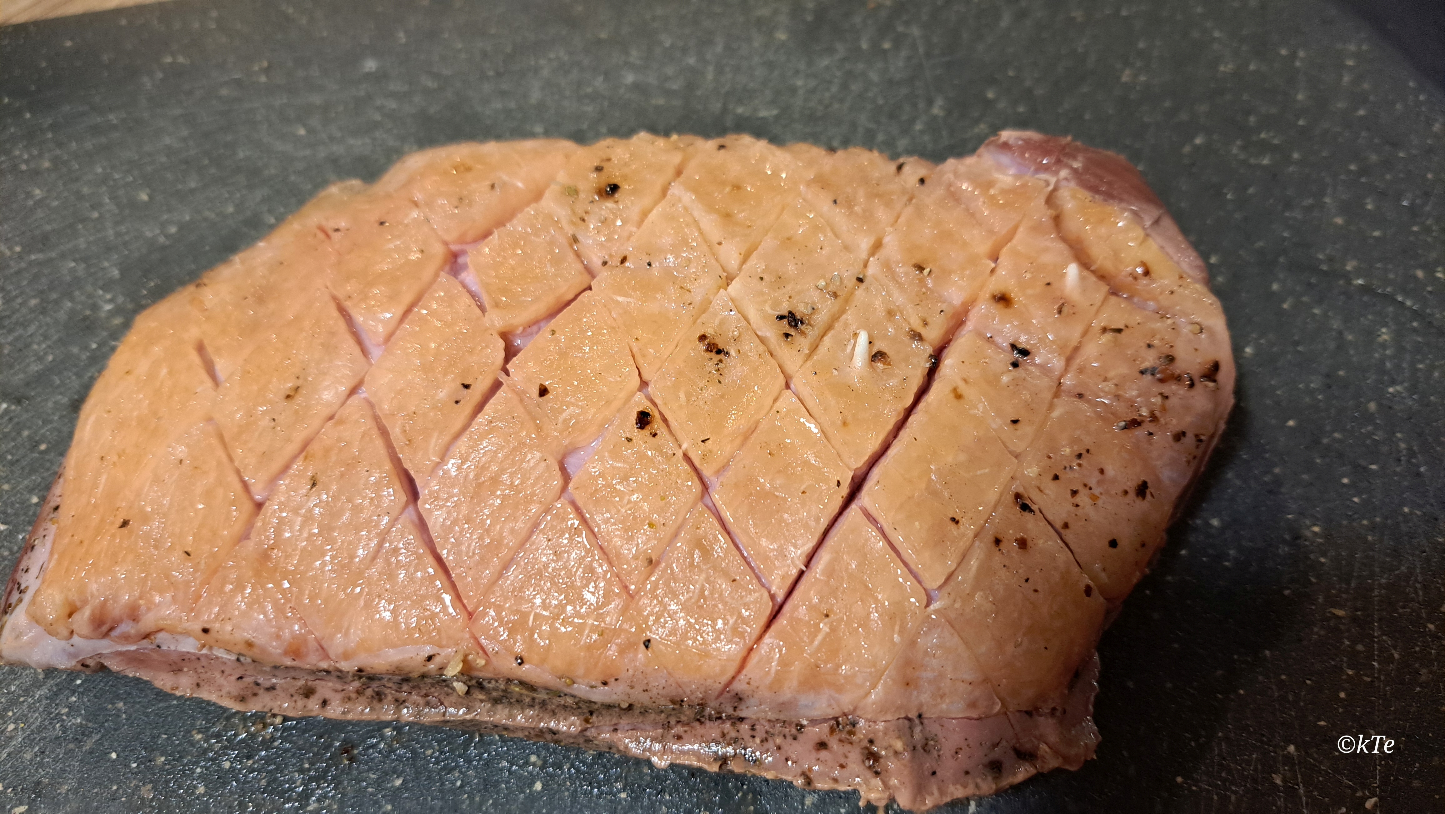 Hier mal eine andere Zubereitungsweise: Sous-Vide-Garen! Das benötigt zwar eine längere Garzeit, aber dafür darf die Entenbrust unbeobachtet die Zeit, bei 60°C, im "Wirlpool" verbringen. Je nach Dicke etwa 2-3 Std.