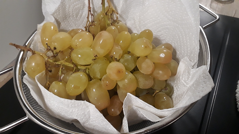 ![]() Gickelteile anbraten ![]() die kernlosen Trauben ![]() karamelisieren der Trauben ![]() aus dem Ofen, auf den Tisch ![]() aus dem Ofen, auf den Tisch |