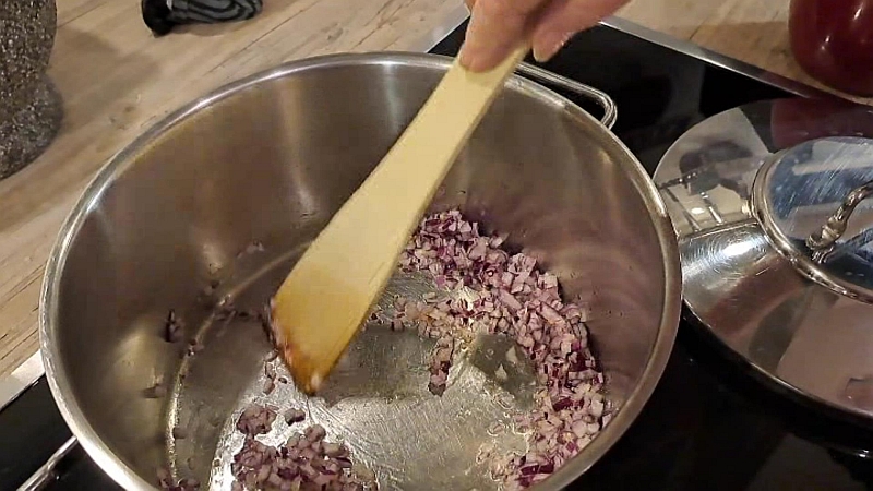 Butter oder Öl in einem großen Topf erhitzen, die Zwiebelchen glasig andünsten; dann kommt das Hackfleisch