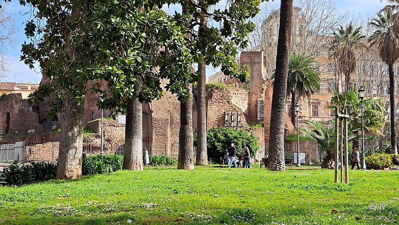 Mittlerweile hat es aufgehört zu regnen und wir können unseren Weg trocken fortsetzen. Vorbei am Forum Romanum geht es zum