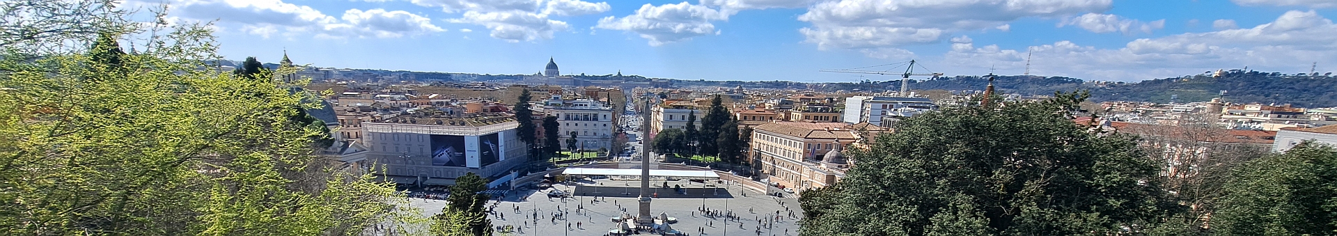 dem aus man einen tollen Blick über die Stadt hat. Im Vordergrund die PIAZZA del POPOLO mit dem OBELISCO FLAMINO bis