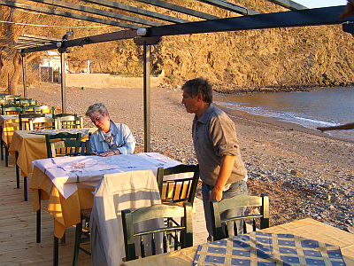 Limnos, im Cafe-Restaurant direkt am Strand. |