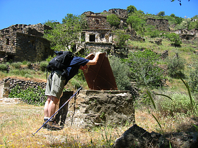 | Wir hatten uns ein altes Häuschen, in einem ebenso alten, fast verlassenen Dörfchen, direkt unterhalb einer ebenfalls alten Festungsruine als Bleibe für zwei Wochen ausgesucht. Von hier aus hatten wir einen herrlichen Blick auf das Meer. Einkaufen für Selbstversorger war in dem kleinen Dorfladen kein Problem aber auch einige Restaurants mit köstlicher griechischer Küche waren vorhanden. Wir waren im Frühjahr dort, und da das Osterfest der orthodoxen Christen immer auf den ersten Sonntag nach dem Frühlingsvollmond, der ersten Tag- und Nachtgleiche des Jahres fällt, also nach dem Ostern im westlichen Teil Europas, hat man uns in dieser Nacht ganz schön aus dem Schlaf gerissen. Da ham die Griechen es ganz schön krachen lassen. Fast so wie bei uns zu Silvester: mit Böllerschüssen und Raketen. Zum Glück hatte man uns schon vorgewarnt. |