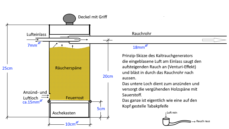 Im Internet gibt es eine Menge von Anleitungen für den Bau eines Kaltrauchgenerators. So bin ich auch fündig