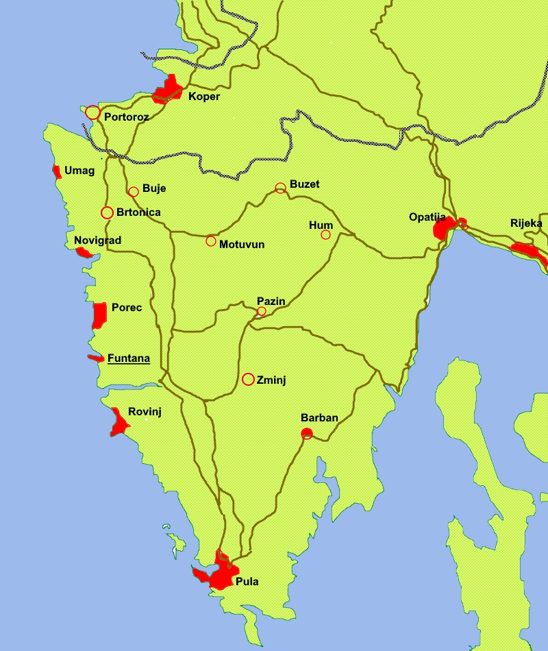 Funtana liegt ca. 7 km südlich von Porec und 32 km nördlich von Rovinj (Limski Kanal Umfahrung!).