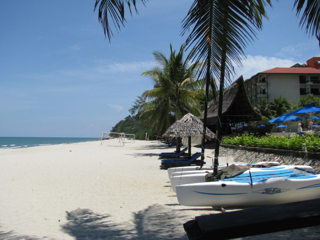 Samstag 14.03.2013 (Kuantan) Heute machen wir uns auf den Weg nach Kuantan. Die Tickest hatten wir uns ja schon ein paar Tage zuvor besorgt. Der Preis war tatsächlich wie wir im Internet von zuhause aus recherchiert hatten keine 5,00€ für die 255 km pro Person in einem super Linienbus, bequemen Sitzen und Aircondition. Da kann man wirklich nicht meckern. Der Taxifahrer vom Busterminal zum Hotel verlangt nach langem Handeln 15 RM (3,00€) was in keinem Verhältnis zum Bus-Ticket steht, aber durchaus OK ist. Sonntag 15.03.2013 – Montag 23.03.2013 Jetzt ist Erholung angesagt. Wir genießen das warme Meereswasser oder den frischen Pool. Freuen uns über die frischen exotischen Früchte zum Frühstück und lassen uns abends die selbst ausgesuchten Fische, Krustentiere mit leckeren asiatischen Zutaten frisch zubereiten. Der Service lässt wirklich nicht zu wünschen übrig. Da wir uns nach landesüblichen Gerichten und deren Zubereitung erkundigen, gewinnen wir den Koch als guten Freund. So vergehen die Tagen viel zu schnell. Dienstag 24.03.2013 (zurück nach Kuala Lumpur) Die Tickets für die Rückreise nach Kuala Lumpur sind besorgt und mit dem Taxi dass nicht kommt um zum Busbahnhof zu bringen wird es kurz noch einmal hektisch aber dann klappt es doch noch und in letzter Minute erreichen wir den Bus. Wir sind zurück im Renaissance Hotel und fragen nach einem hübschen Zimmer mit Blick auf die …….. na was wohl? Die Towers natürlich. Man stell fest dass wir jetzt das dritte Mal da sind und mit etwas Lob über das Hotel und da wir nun die letzte Übernachtung unserer Reise vor uns haben, trauen wir unseren Augen nicht als wir die Tür zu unserem Zimmer, was sage ich der Suite öffnen. Wir haben ein kostenloses Upgrate erhalten. Aber hallo!!!! Eine große Fensterfront lässt den Blick von den Towers links bis zum Telecommunication Tower schweifen. Das war wirklich eine tolle Überraschung. Klick zur: Bildergalerie Kuantan |