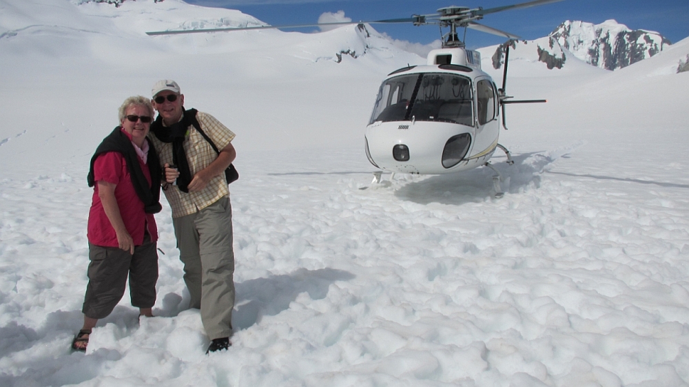 Das muss schon mal sein! Die Landung auf dem Gletscher hatten wir eigentlich nicht eingeplant und standen dann mit Sandalen im ewigen Eis.