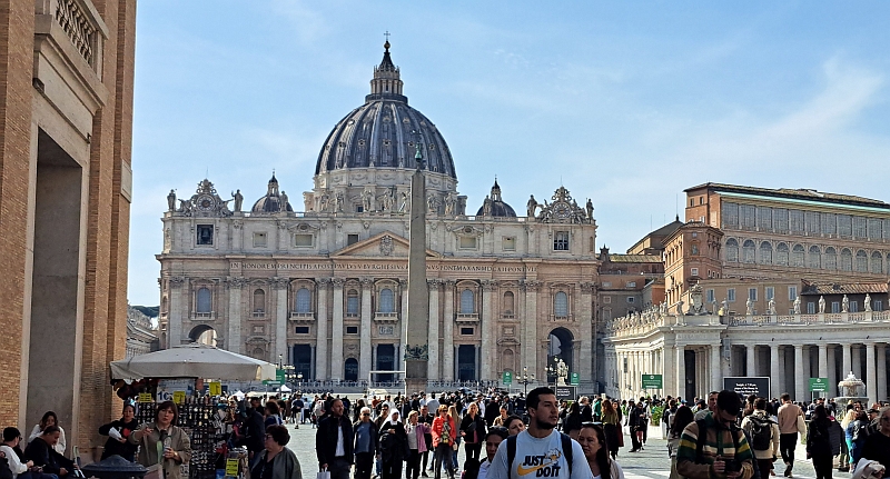 Ein Raumerlebnis der Superlative bietet der Petersdom. Wer möchte kann anschließend auch auf die Kuppel steigen. Beim Ausblick