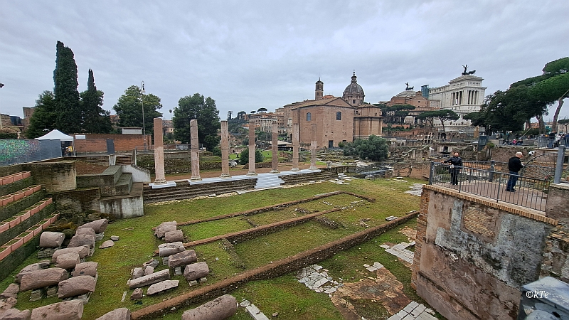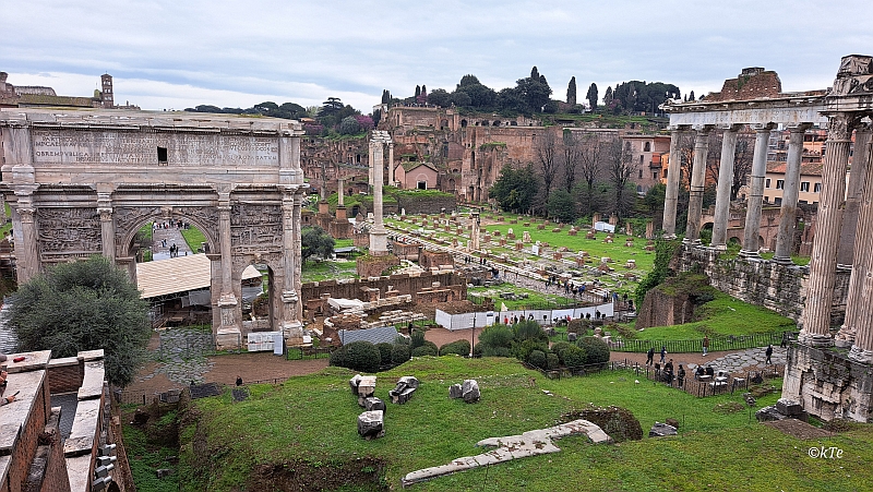 Mittlerweile hat es aufgehört zu regnen und wir können unseren Weg trocken fortsetzen. Vorbei am Forum Romanum geht es zum
