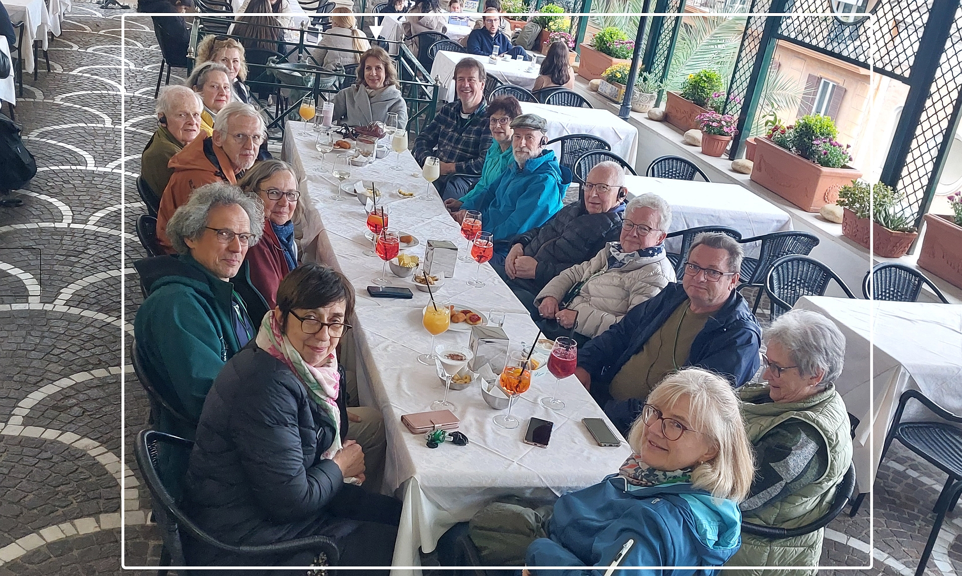 Und beim Abschiedstrunk mit unserer Reisegruppe schweifen unsere Blicke oberhalb der SPANISCHEN TREPPE noch einmal über die