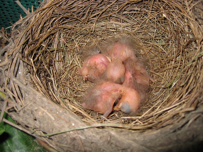 1. Tag Mo 17. April: 4 junge Amseln sind geschlüpft.