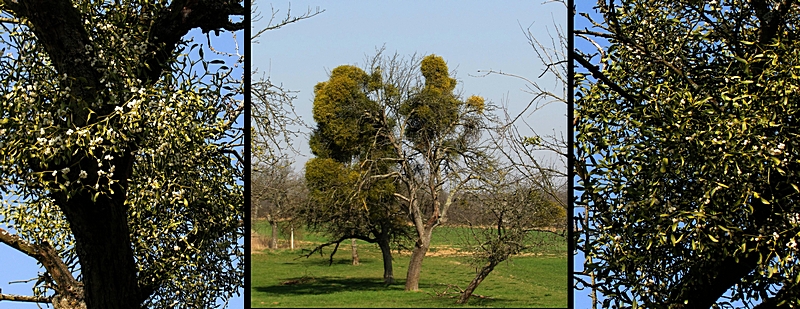 Weißbeerige Misteln, die ihre Nährstoffe vorwiegend von ihren Wirten beziehen.